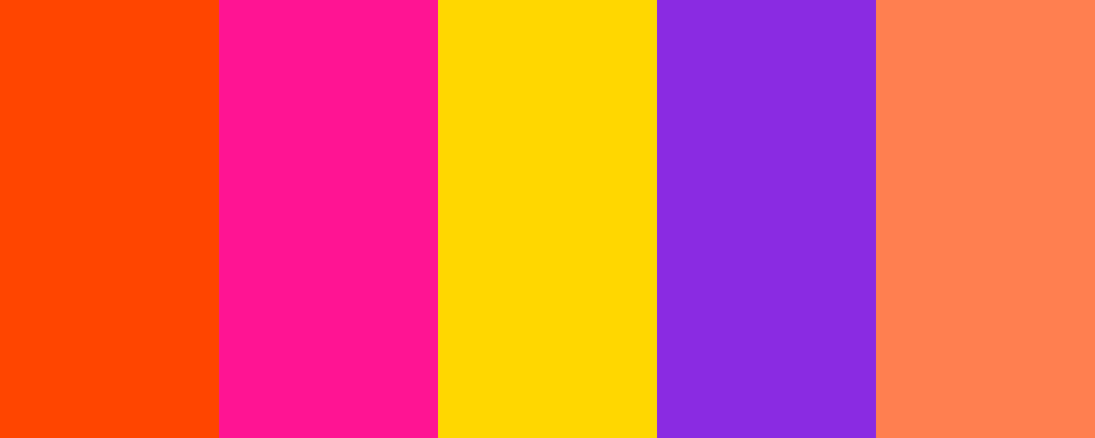 This palette features bright and bold colors that evoke the striking beauty of a sunset with shades of orange, pink, yellow, purple, and coral. Would you like to explore how to use this palette or need help with something else?