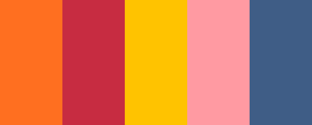 Essa paleta reflete a beleza vibrante e acolhedora do pôr do sol, apresentando tons de laranja, vermelho, dourado, rosa e azul. Você gostaria de explorar aplicações para essa paleta ou tem mais alguma pergunta?