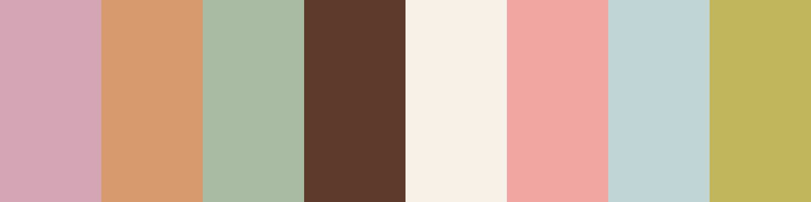 This expanded palette includes soft coral and pale sage to add a fresh touch, while muted mustard introduces a hint of brightness. The combination maintains a warm and inviting autumn feel.