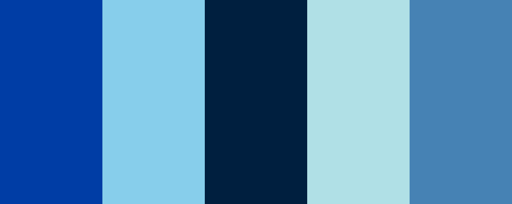 This palette embodies the elegance and versatility of blue tones, ranging from deep navy to soft powder blue, perfect for evoking a sense of serenity and sophistication.