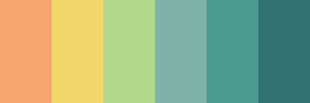 Here’s a softer gradient color palette that transitions from #f87b51 to #327171 , incorporating more muted shades to reduce contrast.