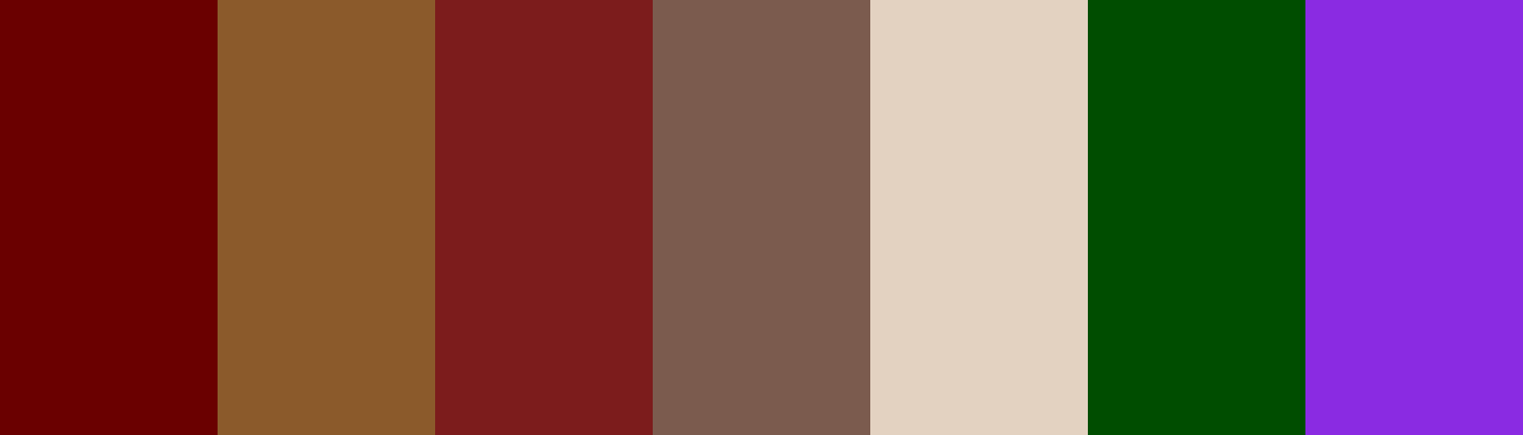This updated palette now includes dark green and violet, creating a rich and vibrant combination of colors that remains grounded in earth tones. Would you like to discuss potential uses for this palette, or do you have any other modifications in mind?