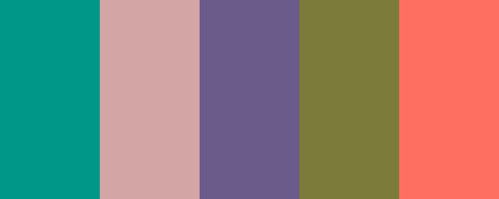The “Elegant Whimsy” palette combines sophisticated tones with a touch of playfulness, perfect for an adult audience. The Mystical Teal adds a fresh yet calming vibe, while Dusty Rose introduces warmth without being overly sweet. Twilight Purple brings depth and a hint of mystery, complemented by the earthy Golden Olive, which grounds the palette. Soft Coral adds a playful pop that invites engagement without feeling juvenile.