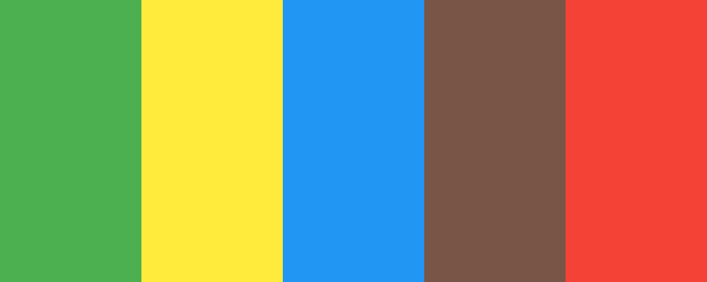 Ця палітра відображає кольори, що асоціюються з українською природою. Зелений луг символізує трави та рослинність, жовте поле - пшеничні поля, блакитне небо - ясний день, коричнева земля - родючість, а червоні квіти - яскраві акценти на фоні природних кольорів.