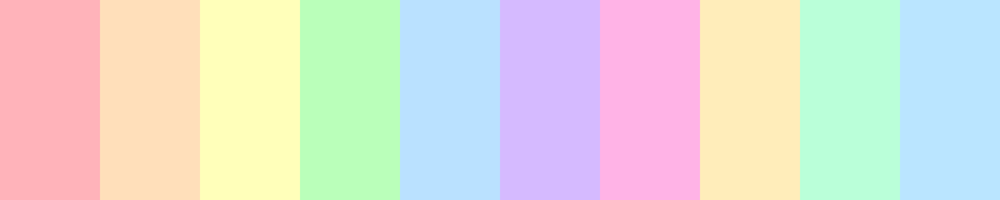 linear-gradient(90deg, #FFB3BA 0%, #FFDFBA 10%, #FFFFBA 20%, #BAFFBA 30%, #BAE1FF 40%, #D5BAFF 50%, #FFB3E6 60%, #FFEDBA 70%, #BAFFD9 80%, #BAE5FF 90%)