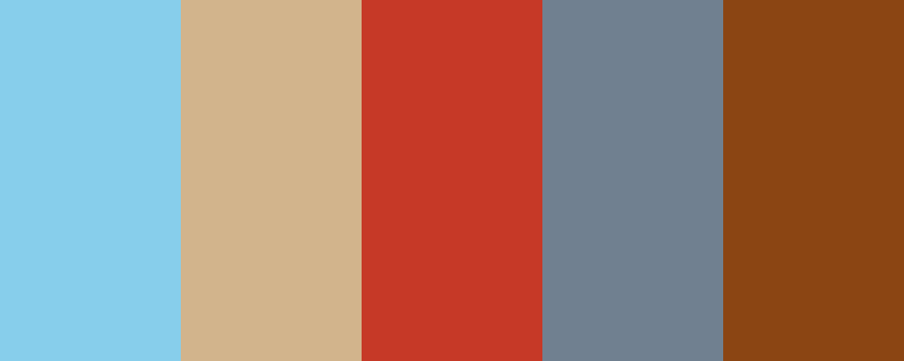 This palette features the soft blues of the sky, earthy beiges, and browns, along with hints of rusty red, reflecting the natural environment where falcons soar over the steppes.