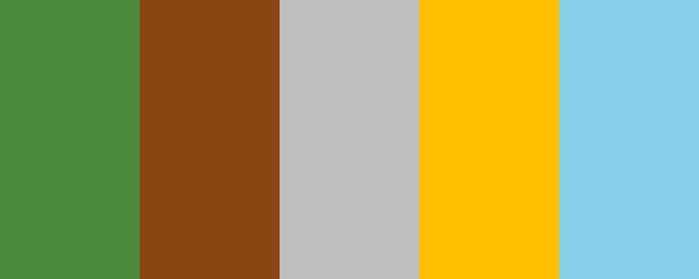 This palette embodies the essence of a druid’s hut, featuring natural greens, browns, and stone grays, complemented by warm amber and serene blue, reflecting the harmony with nature.