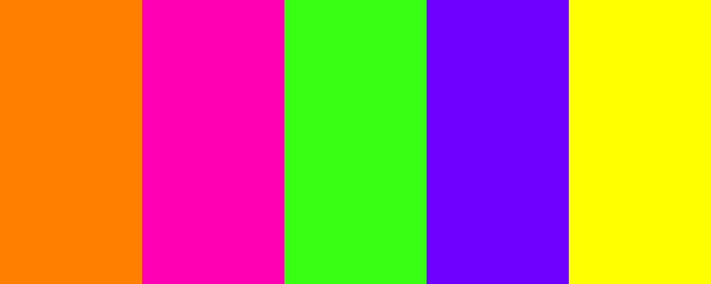 The Bright Cyber Orange palette features a striking bright orange that captures attention, paired with vivid magenta, neon green, electric indigo, and bright yellow for an energetic and modern feel. This palette showcases a bold and vibrant aesthetic, perfect for tech-themed designs.