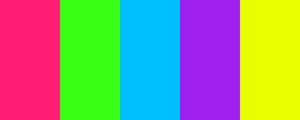 The Cyber Neon palette features a collection of electrifying colors that evoke the feel of neon lights in a cyberpunk world. Neon pink and green take center stage, while electric blue, bright purple, and fluorescent yellow add vibrant contrasts, making this palette perfect for futuristic designs and artworks.