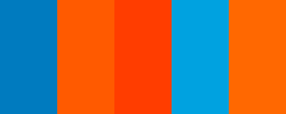 Here is a color palette inspired by the colors you provided (007FBF, FF5500, FF0000):
