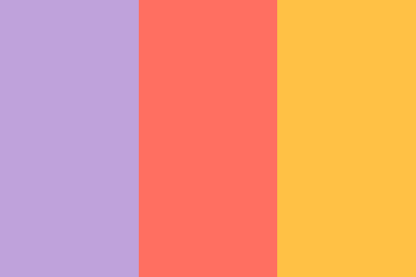 This palette combines the soft, calming tones of lavender with the vibrant and warm shades of coral and marigold, creating a balanced and cheerful aesthetic.