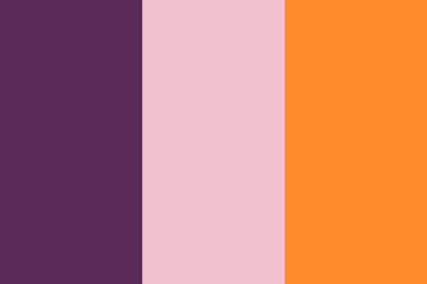 Palette Description: This palette, titled “Playful Elegance,” merges the deep sophistication of plum with the gentle charm of soft pink and the lively zest of tangerine. It’s ideal for designs that seek to balance elegance with a playful touch.