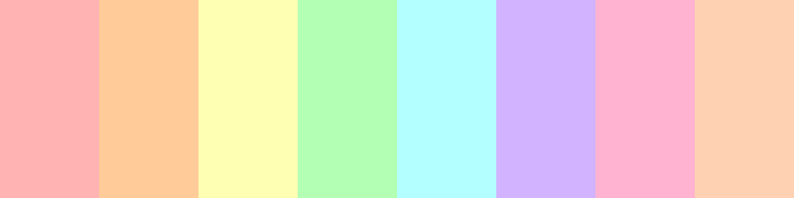This pastel rainbow color scheme provides a soft and gentle aesthetic, perfect for creating a visually pleasing layout without the use of blue.