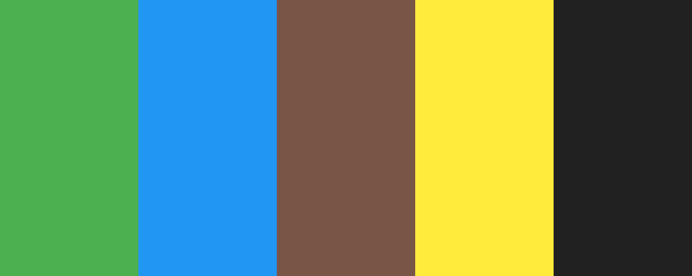 This palette combines earthy greens and browns with vibrant blues and yellows, reflecting the themes of ecology and energy.
