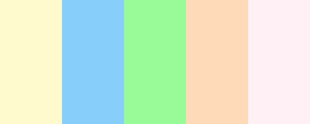 This palette uses gentle colors like Soft Yellow and Light Sky Blue to create a welcoming and friendly atmosphere, while Pale Green adds a sense of calm and approachability. Peach and Lavender Blush complete the palette with warmth and softness.
