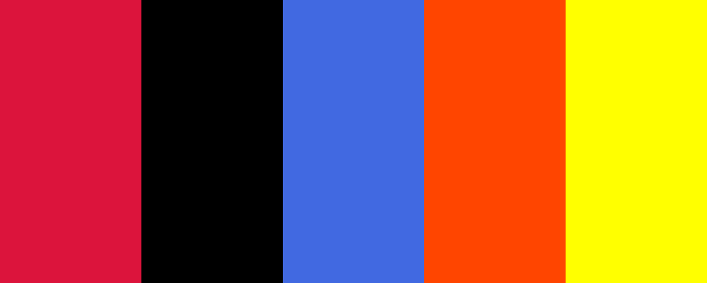 This palette utilizes powerful colors like Crimson Red and Jet Black to represent strength and determination. Royal Blue adds a touch of authority, while Vibrant Orange and Bright Yellow bring energy and optimism, enhancing the overall sense of boldness.