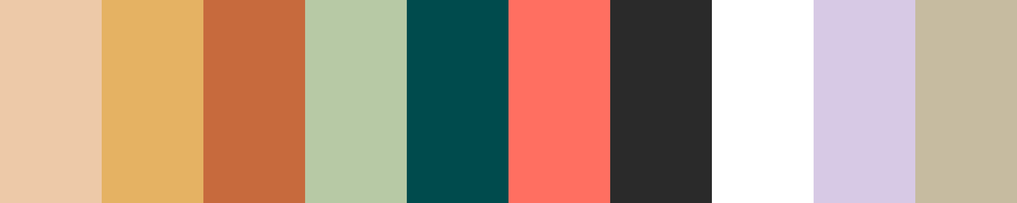 - Muted Lavender provides a soft, calming touch, and Warm Taupe enhances the overall warmth of the palette.