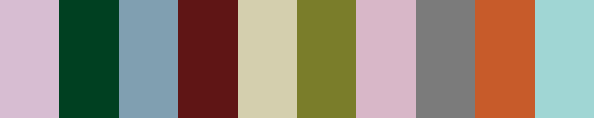 This extended palette introduces muted olive and slate gray for a more grounded feel, while dusty rose and rust orange add warmth and vibrancy. Seafoam green provides a refreshing note to balance the overall aesthetic.