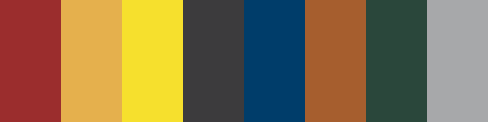 This palette features colors representing each of the four Hogwarts houses: Gryffindor, Hufflepuff, Ravenclaw, and Slytherin. Each color reflects the essence and spirit of the respective house.