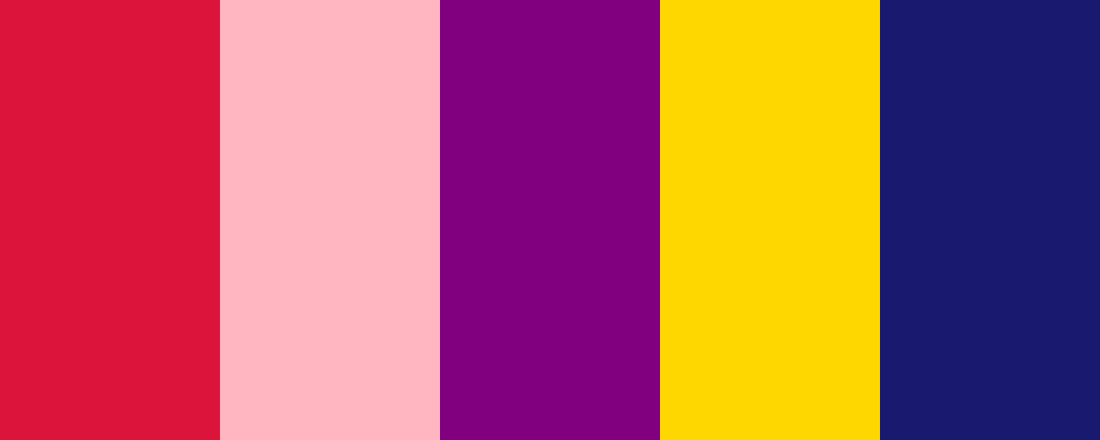 This palette combines passionate reds and soft pinks to symbolize love, while deep purple adds complexity, gold brings a touch of warmth, and midnight blue introduces depth and mystery.