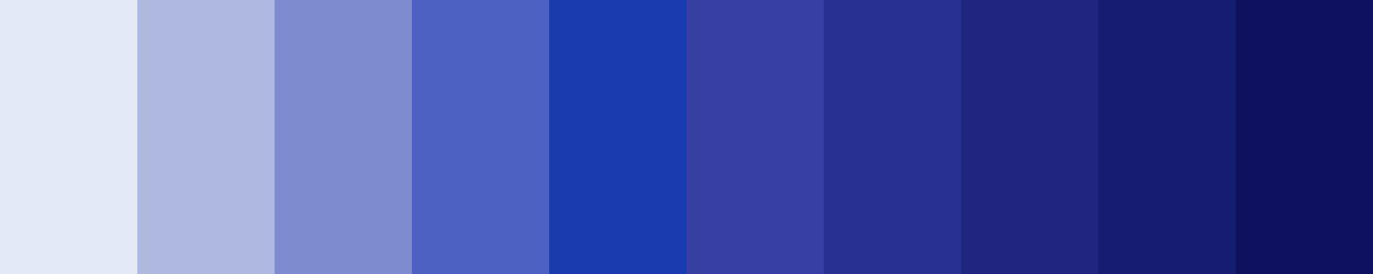 Here is a monochromatic color palette generated based on the color #353ea1 . The original color is the 6th shade, with lighter and darker variations surrounding it.
