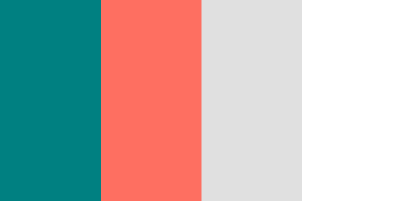 This palette, named “Teal and Coral Harmony,” features a vibrant teal that brings a refreshing touch, complemented by a warm coral for a lively contrast. The light gray adds a subtle neutral balance, while white enhances brightness and clarity in designs.