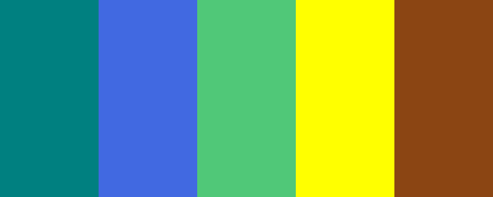 This palette, “Peacock Vibrance,” combines rich and vibrant colors inspired by the beautiful plumage of peacocks. The teal and emerald green provide a fresh, natural feel, while royal blue adds depth. Yellow brings brightness and energy, and brown grounds the palette with a warm, earthy tone.
