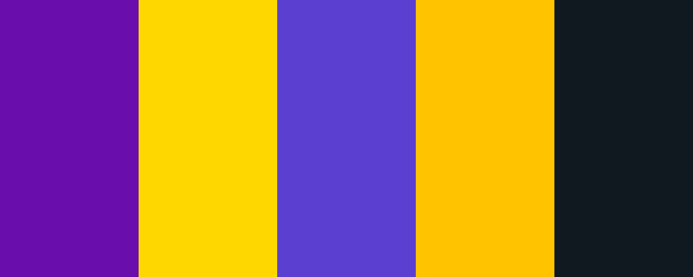 Based on the colors you provided, which are a vibrant purple ( #6A0DAD ) and a bright gold ( #FFD700 ), I have created a color palette. Here is the JSON representation of the palette:
