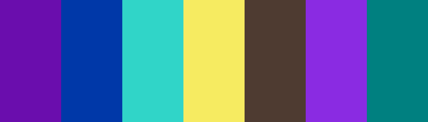 Here is a color palette inspired by the vibrant colors of a peacock’s head and tail, featuring purples, blues, a yellow, a brown, and complementary colors: