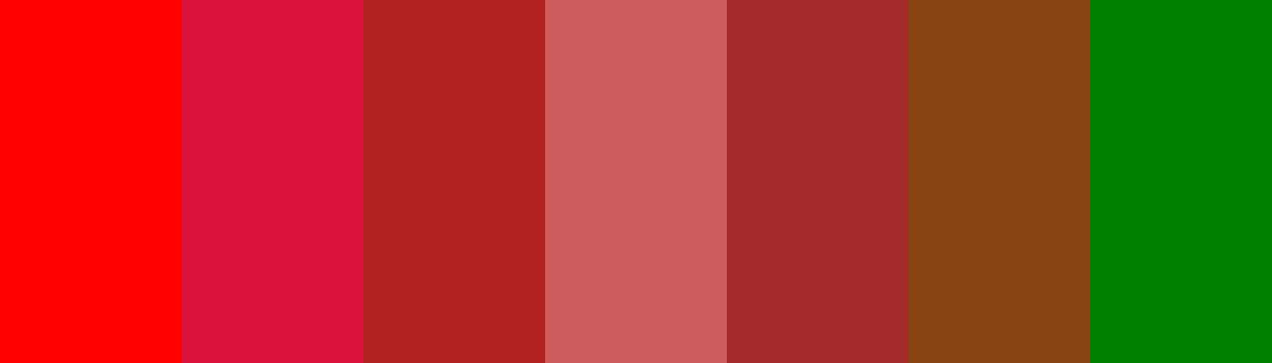 This palette transitions smoothly from bright red to dark brown, with a contrasting green color that provides a vibrant contrast to the red hues.