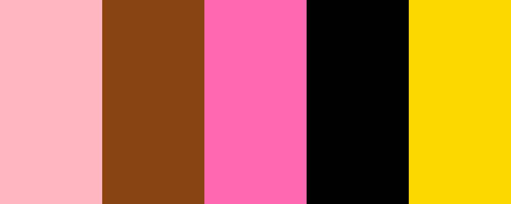 This palette highlights soft pinks for the body of the piggy bank, a brown for the nose, a bright blush for the cheeks to give it a cute look, black for the eyes, and a shiny yellow for the coins that it might be collecting.