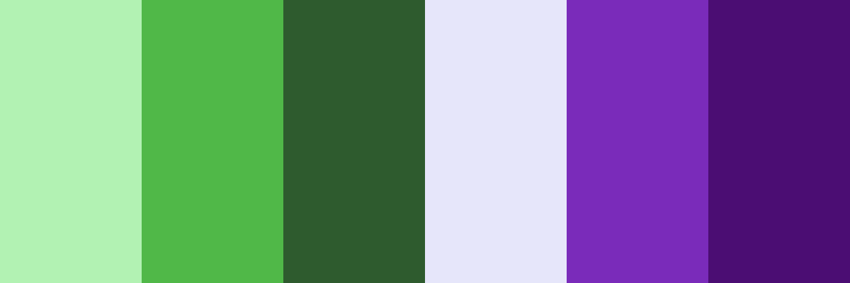 Here is a color palette inspired by your request for green and purple shades, with variations of light and shadow: