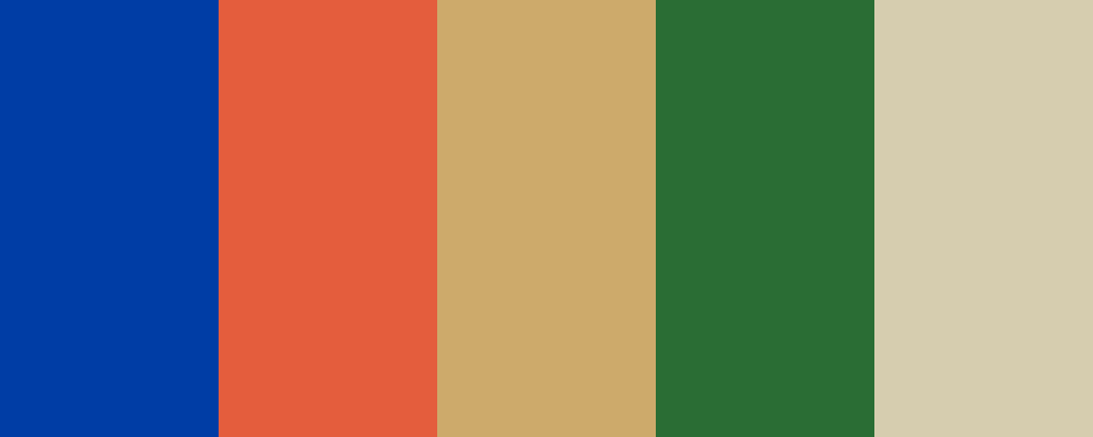 This palette captures the essence of ancient Babylon with its use of royal blue to represent the skies and rivers, terracotta for clay bricks, gold for wealth and opulence, deep green for lush vegetation, and sandstone for the structures of the city.