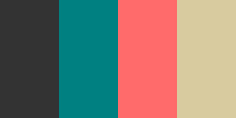 This palette combines a deep charcoal gray for a strong and professional base, a teal blue for creativity and calmness, a soft coral for a touch of warmth and approachability, and a warm sand color for a neutral balance. Together, these colors create a sophisticated and versatile branding identity.