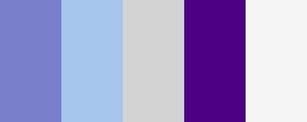 This palette, “Lavender Dreams,” features a blend of soothing and calming colors, ideal for creating serene and peaceful environments. The combination includes a soft lavender, complemented by a pale sky blue, misty gray, deep indigo, and a touch of white smoke for balance.