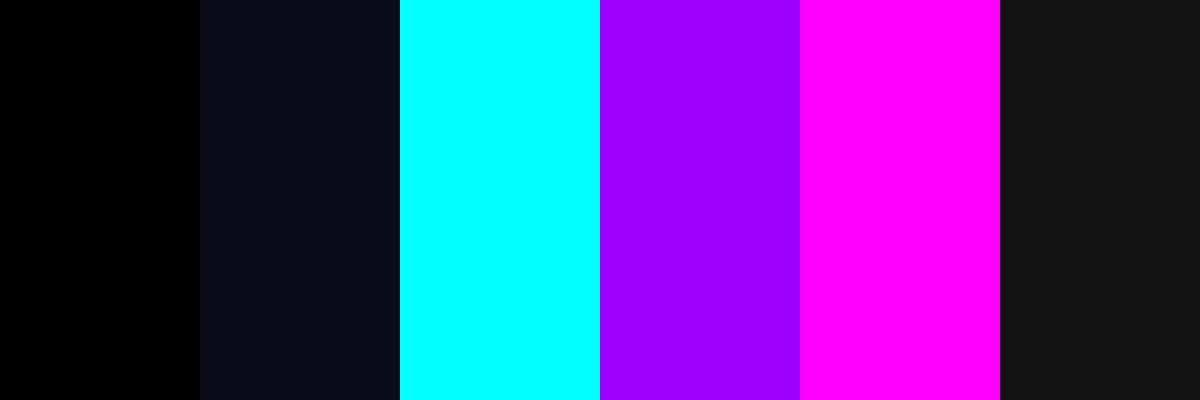 The “Electric Night” palette features a striking contrast between deep, dark shades and vibrant, neon accents. The Pure Black and Midnight Blue-Black serve as a bold foundation, while the Neon Teal, Electric Purple, and Hot Pink add a pop of electrifying color. Dark Gray provides a subtle neutral base that ties the palette together, making it perfect for modern designs that want to make a statement.