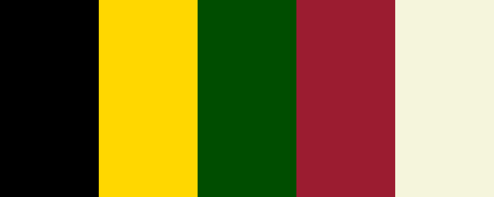 وصف لوحة الألوان: هذه الألوان متناسقة وتعبر عن الأناقة والقوة، حيث يجمع الأسود الملكي مع الذهبي اللامع ليعطي شعورًا بالفخامة. الأخضر الغامق يضيف لمسة من الطبيعة، والقرمزي يعكس الشغف والعاطفة، بينما البيج الفاتح يوازن الألوان ويضيف لمسة من الدفء.