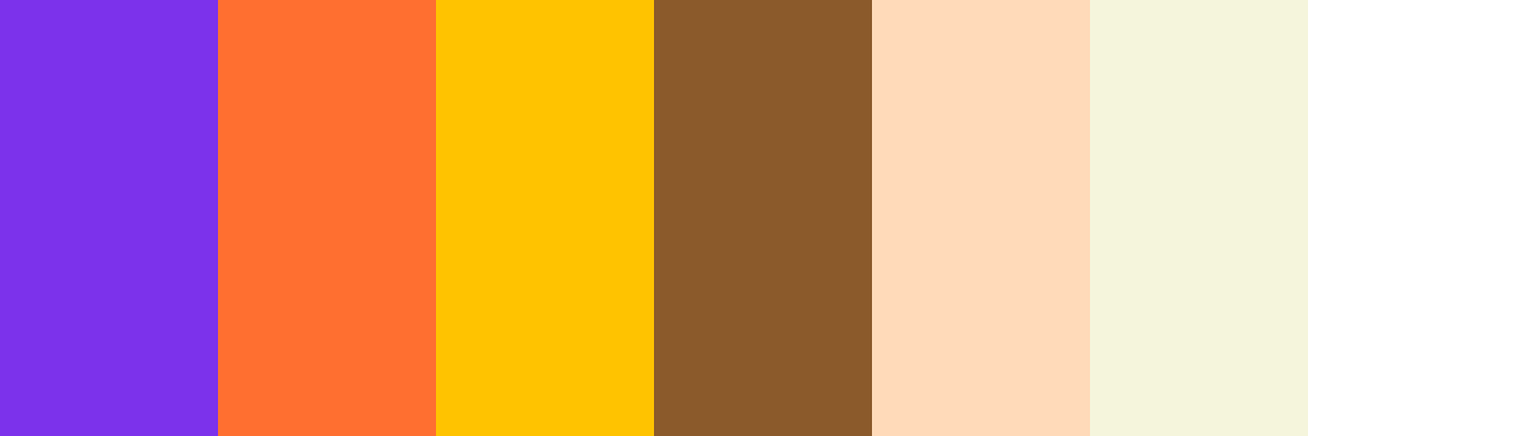 The “Warm Ultraviolet” palette retains the vivid violet while introducing bright and warm colors. Coral orange and golden yellow provide a lively contrast that evokes energy and warmth. Warm brown adds depth to the palette, while peach and soft beige offer a gentle balance. Bright white keeps the palette fresh and vibrant, making it ideal for projects that want to convey warmth, optimism, and a welcoming atmosphere.