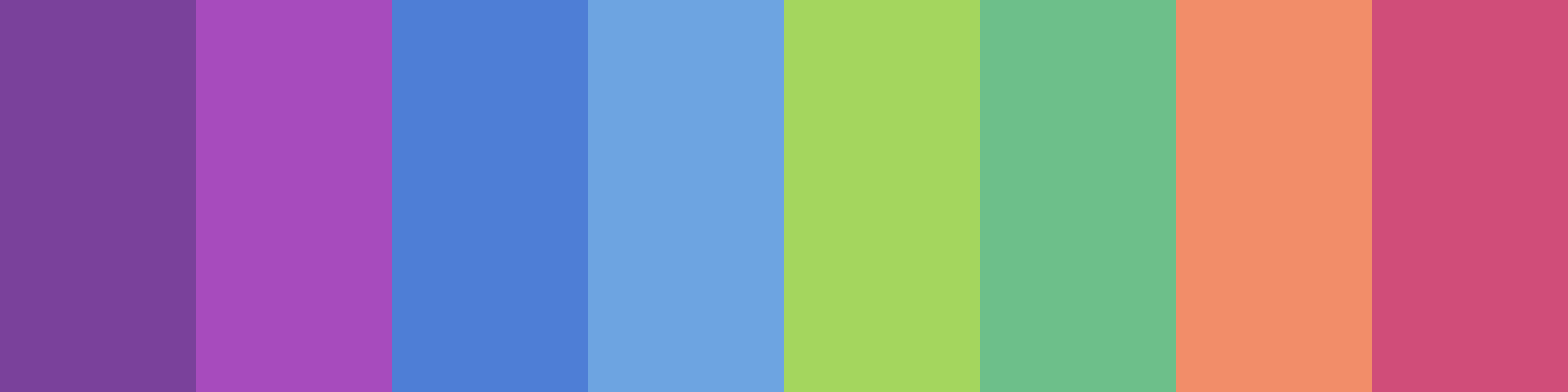 linear-gradient(135deg, #7A419B 0%, #A74BBD 14%, #4E7ED6 28%, #6DA4E1 42%, #A4D65E 56%, #6DBF8A 70%, #F28D69 84%, #D04D79 100%)
