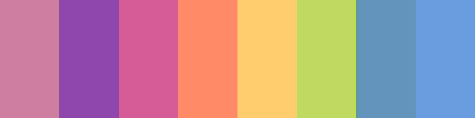 This palette features a smooth transition from purple to pink-lilac, showcasing a gradient of colors that flow harmoniously together. Would you like to explore any specific applications for this color palette, or do you have any other preferences or questions?