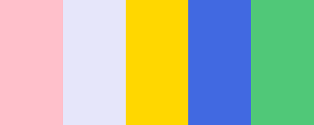 This palette combines soft pinks and blues with vibrant gold and green, perfect for a princess-themed design.