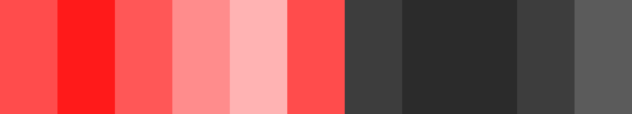 In this palette, I’ve chosen vibrant reds for the text and accents to create an uplifting atmosphere while maintaining a darker grey background. The use of reds throughout should help brighten the overall look without relying on white.