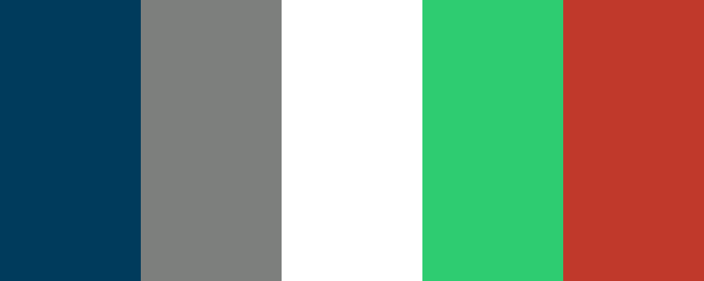 This palette consists of a strong deep blue to represent trust, a neutral gray for balance, pure white for clarity, a vibrant emerald green for growth, and a bold crimson red for impact.