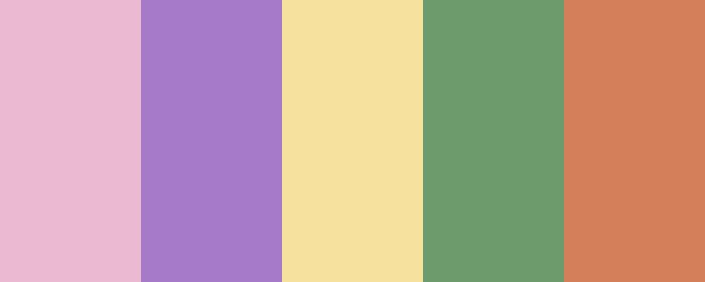 This palette captures the essence of perennial blooms, showcasing soft pinks, vibrant purples, sunny yellows, lush greens, and warm terracotta, reminiscent of a flourishing garden throughout the year.