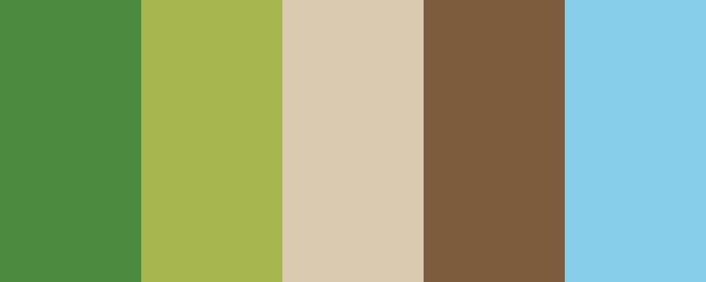 This palette encapsulates the essence of Centipede grass, combining refreshing greens with earthy neutrals and a touch of sky blue to create a serene atmosphere.