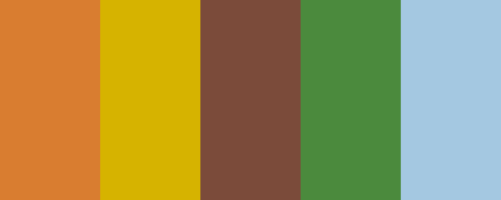 This palette captures the natural essence of a rye field during harvest season, featuring warm golden tones, earthy browns, soft greens, and a hint of blue sky.