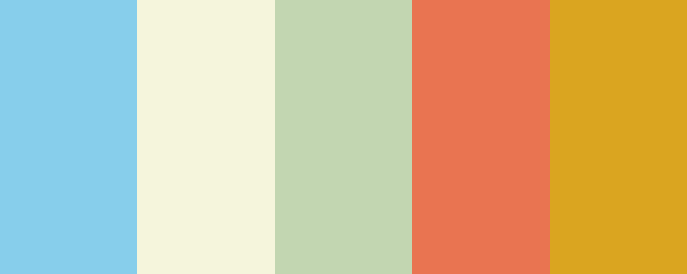 Here’s a soothing color palette that maintains light sky blue as the background color while incorporating warmer colors suitable for male yukata designs.