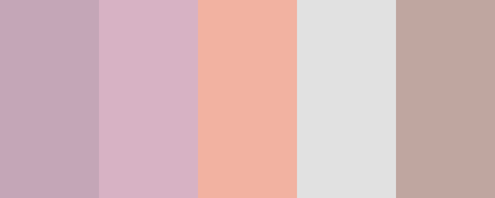 The “Muted Rose Serenity” palette features the soft and calming tones of muted rose, paired with dusty pink and soft coral to evoke warmth and tenderness. The pale grey adds a light and airy feel, while warm taupe brings a comforting depth to the composition. This palette is perfect for creating a tranquil and inviting environment.
