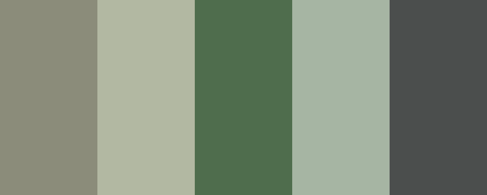 The “Grey Green Fusion” palette combines the serene tones of grey and green to create a sophisticated and calming look. Olive grey and sage grey provide a muted base, while moss green adds a touch of nature. Dusty sage introduces a lighter hue, and charcoal green grounds the palette with depth. This combination is perfect for modern and natural designs, evoking a sense of tranquility and balance.