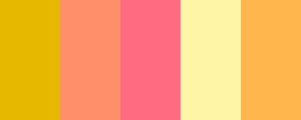 Here is a refined warm retro color palette with less bright yellow while maintaining a balance of yellows and pinks: